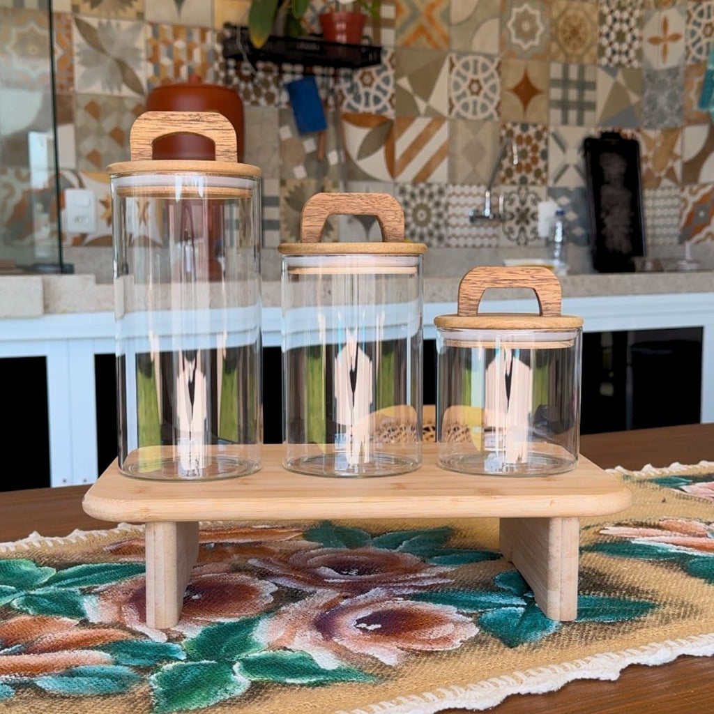 Opções: Kit 3 Potes + Tábua Bambu [FRETE GRÁTIS]