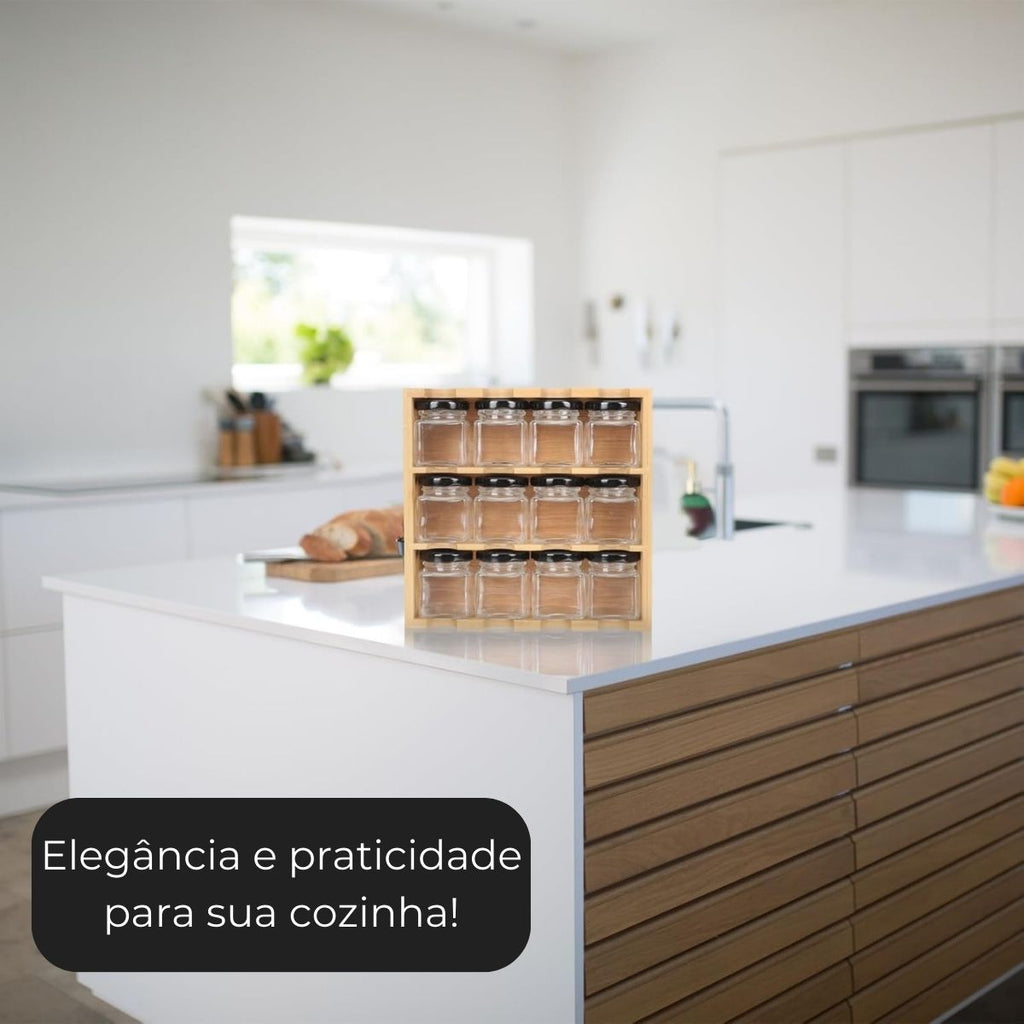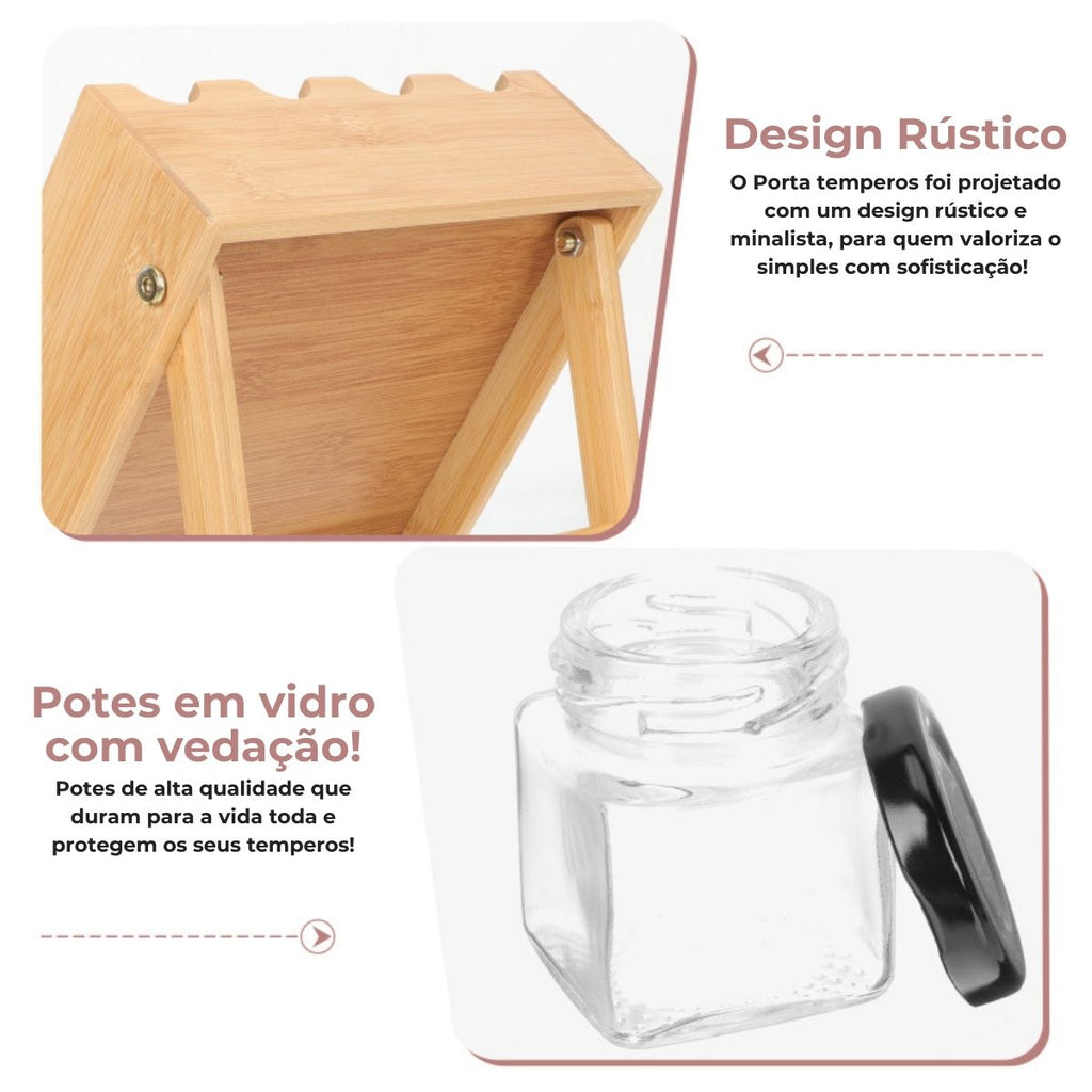 - Material: Estrutura em bambu de alta durabilidade e potes de vidro com vedação hermética.