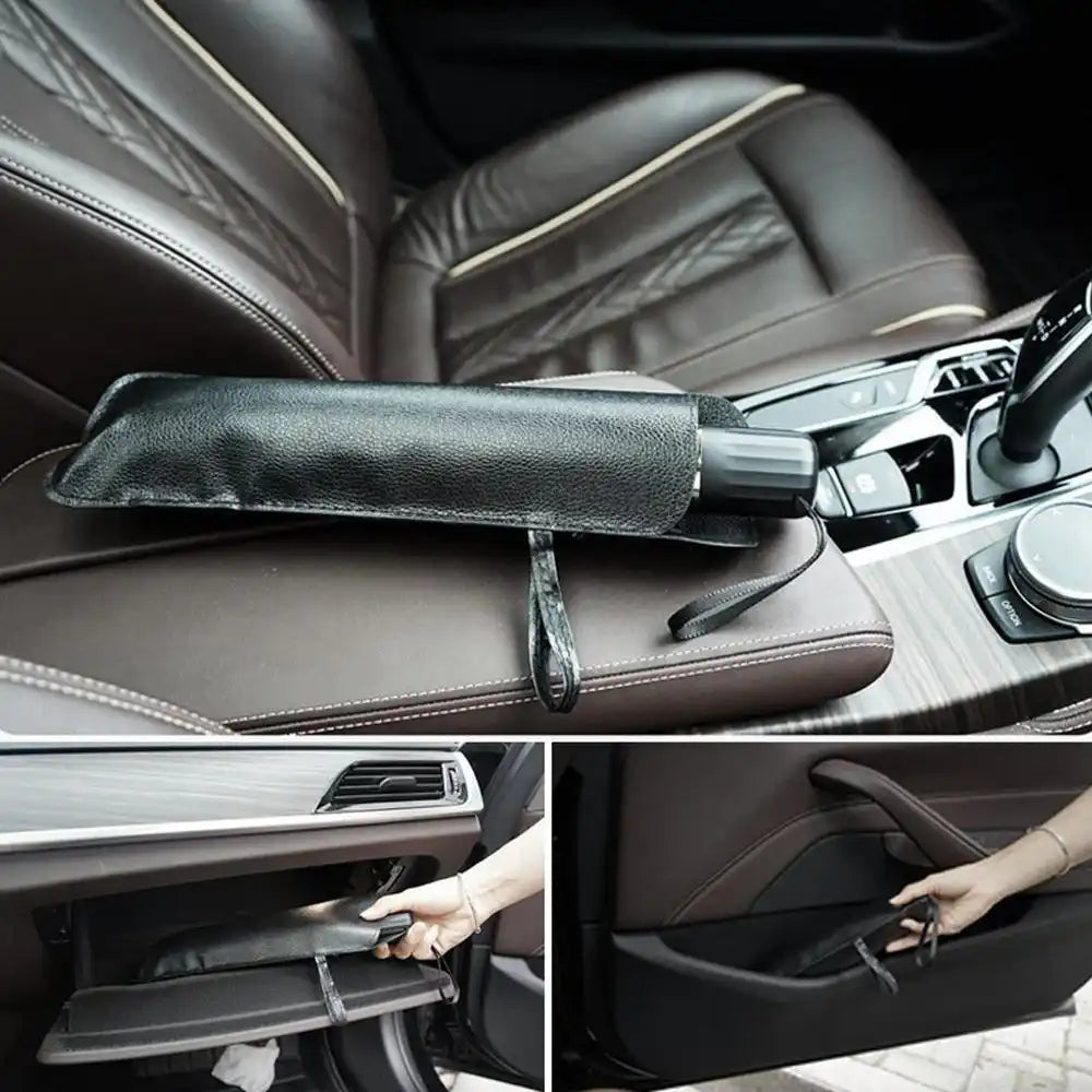 Possui pequeno volume após ser dobrado (acompanha um saco de armazenagem) e pode ser colocado na lateral da porta do carro ou no porta luvas.